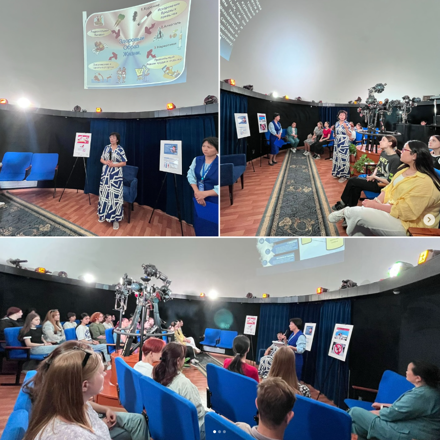 17.06.2025 году среди студентов гуманитарного колледжа в областном планетарии проведен семинар-тренинг на тему «Вся правда об электронных сигаретах» с презентационным материалом, викторине с вопросами о курении и показом видеоматериалов. Охвачено – 24 чел.