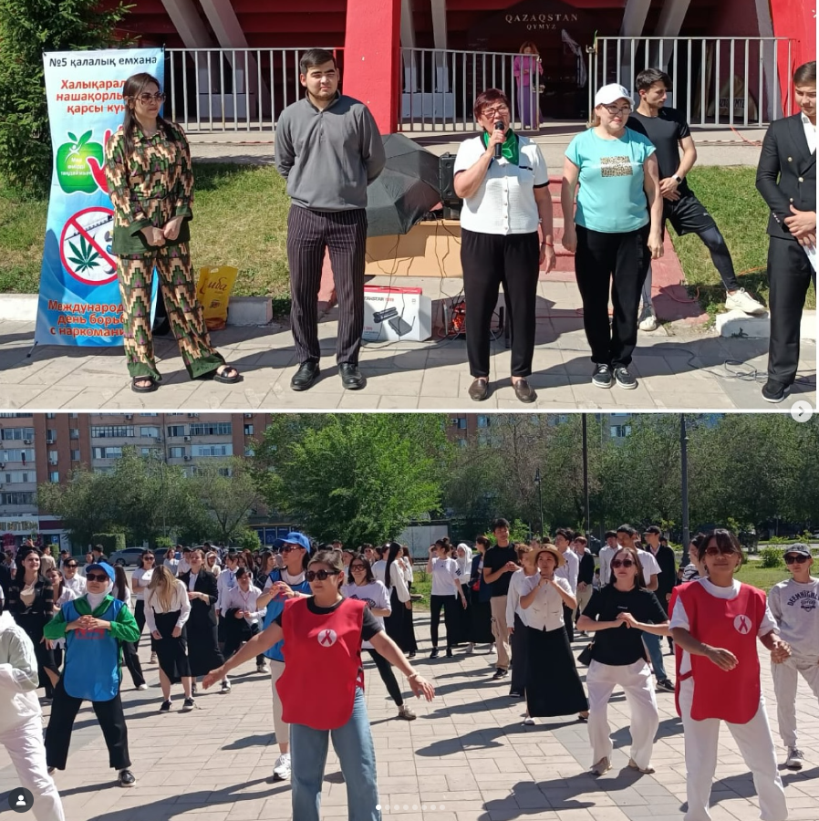17.06.2025ж. күні “Халықаралық нашақорлықпен және заңсыз есірткі айналымына қарсы күрес күніне” орай айлық іс -шарасы аясында N 5 қалалық емханамыздың Салауатты өмір салты мен психолог мамандары “Біз -өмірді таңдаймыз! Ақтөбе-есірткісіз қала!” атты ұранымен сауда орталығы мен саябақ аймағында ақпараттандыру түсіндірме жұмыстары жүргізілді. Нашақорлықтың алдын алу мақсатында қала тұрғындары мен жастарға ақпараттық бүктемелер таратылып, зиянды, жат әдеттерден аулақ болуға шақырылды.